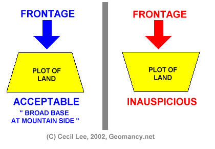4. More importantly, if one looks carefully at the first trapezoid with blue wordings, or the acceptable shape; One will find that the based is broader than the frontage. This is symbolic of a mountain effect. Even if a trapezoid shape is not the best configuration.